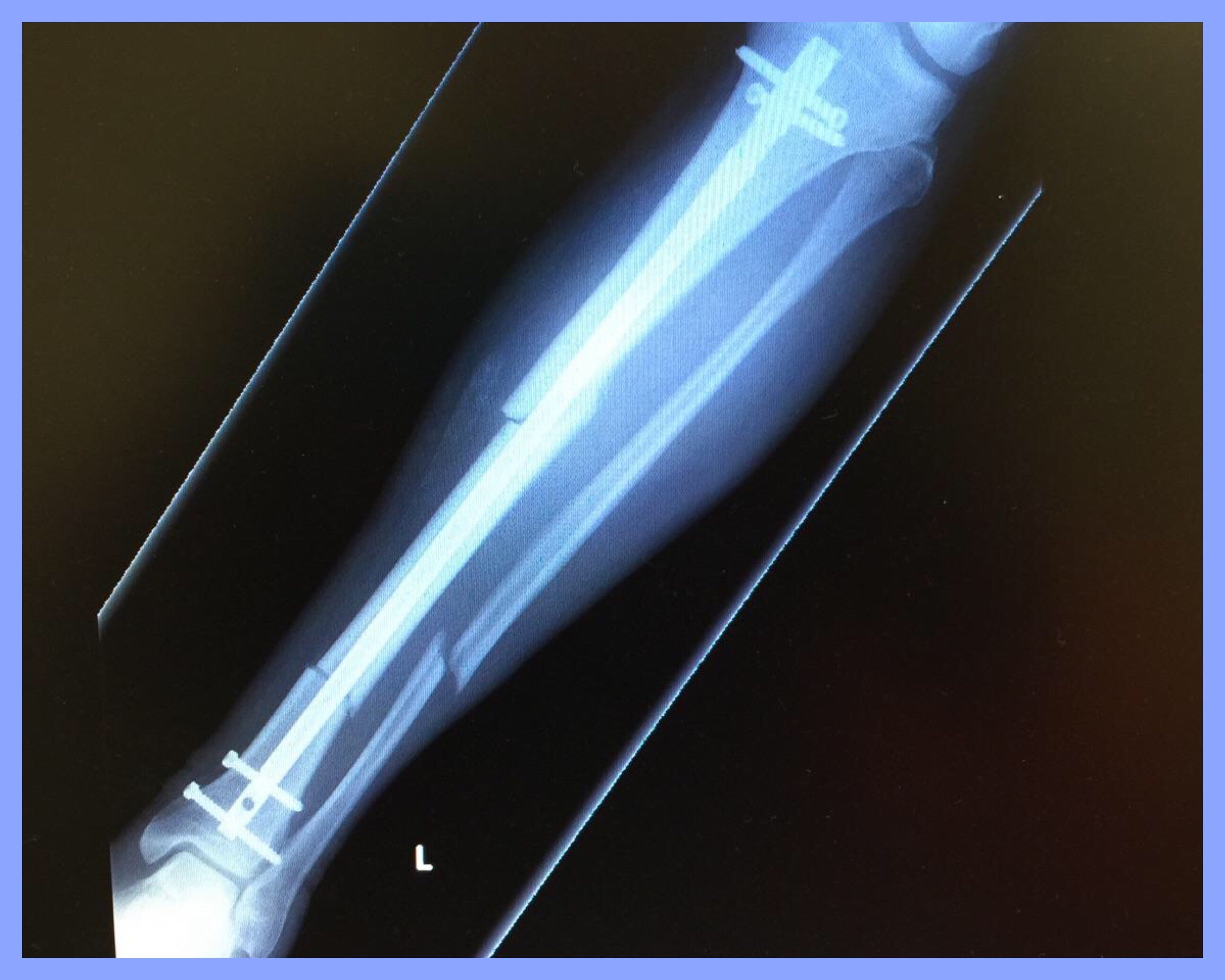 After 8 hours in the ER and 2 hours of surgery, I went home the next afternoon with the titanium rod and screws you see below. The hardware is permanent.