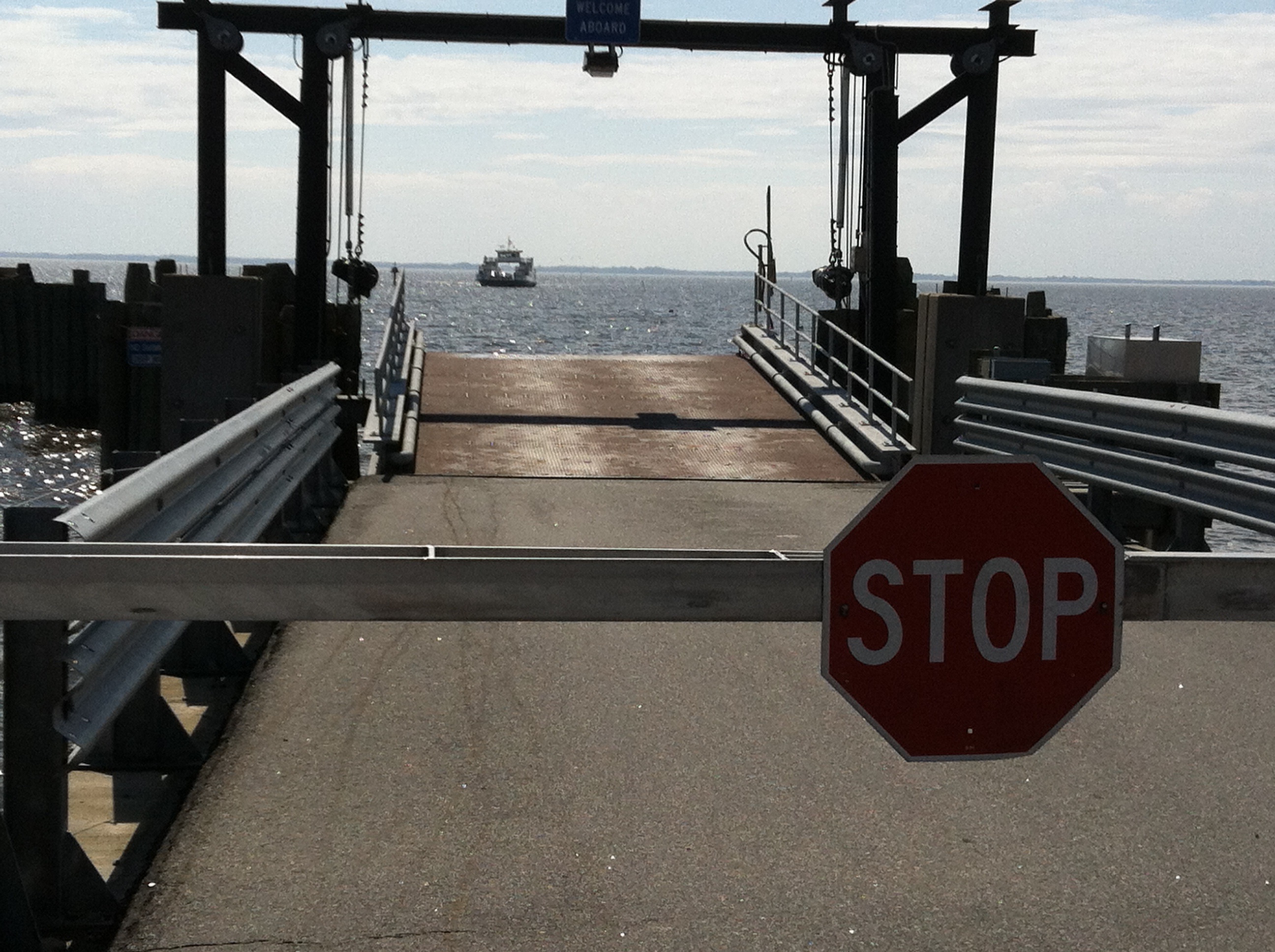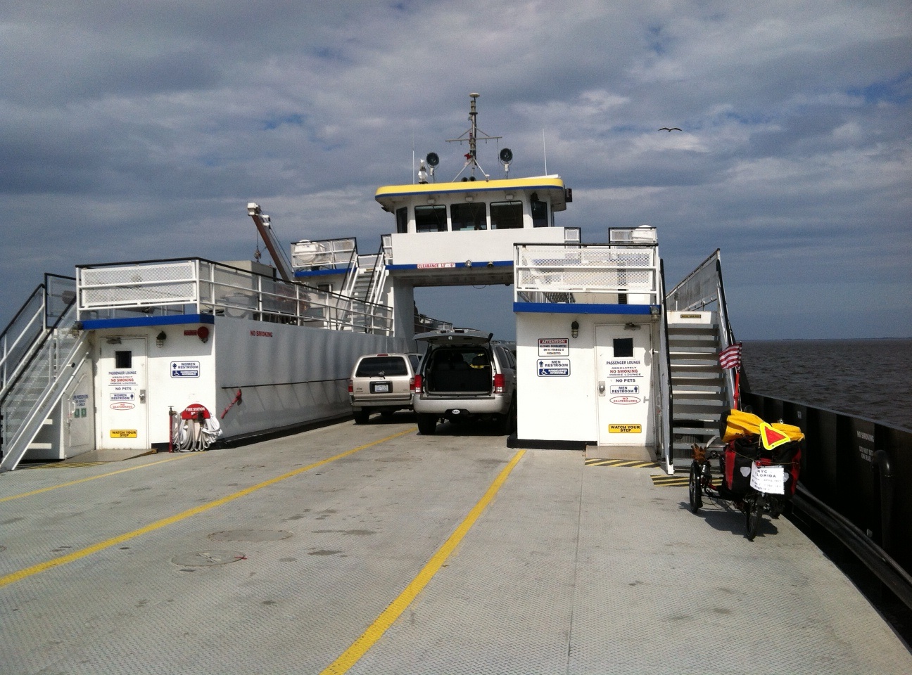 Then it was on through the rain to the Knotts Island – Currituck ferry. We had to wait 90 minutes for the next departure. The sun came out in time for the crossing, although it soon disappeared again.