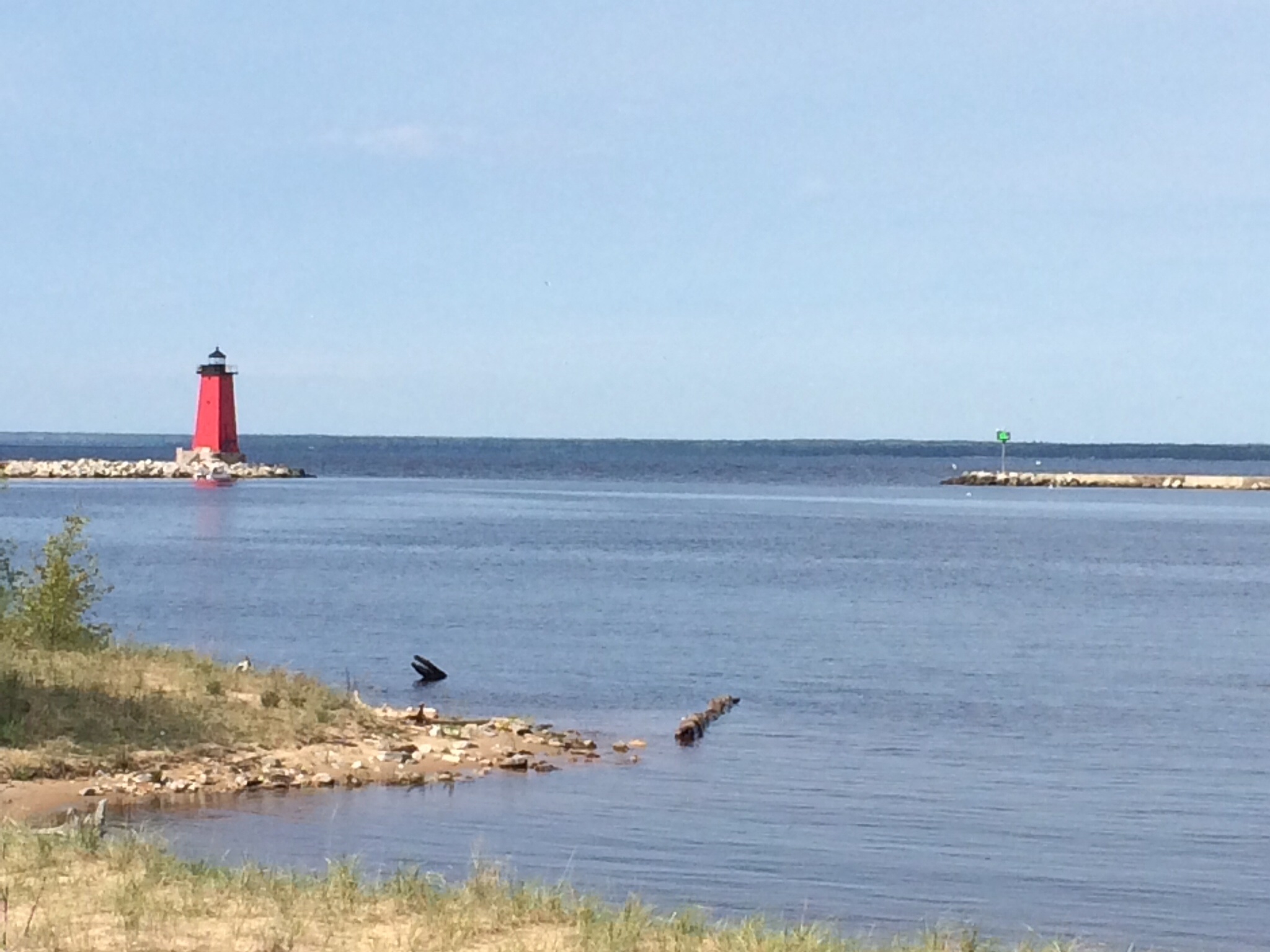 We passed the 1915 Manistique Lighthouse, a historic water tower and cabin, and typical lakeshore sandy terrain.