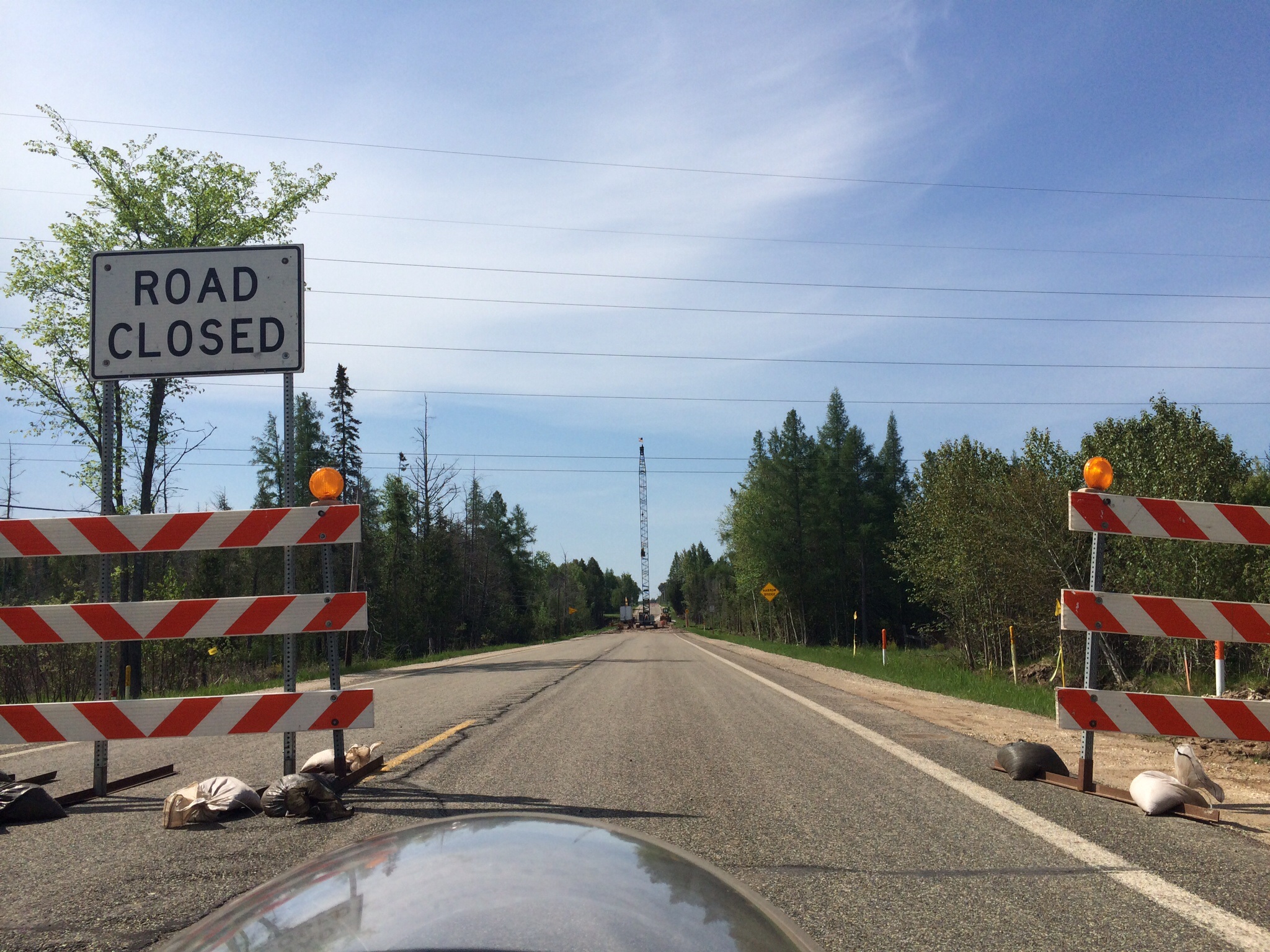 A bridge was under repair, so a local suggested I take a detour.  Somehow the GPS led me to a closed road.  “Closed for cars, maybe,” I said to myself, and figured the trike would get around the problem.  Nope!  There is no bridge over that stream.  It was too wide and deep to ford.  I turned around, waved down a car, asked directions, and added about 5 miles to the trip.  But I found U.S. 2 again.