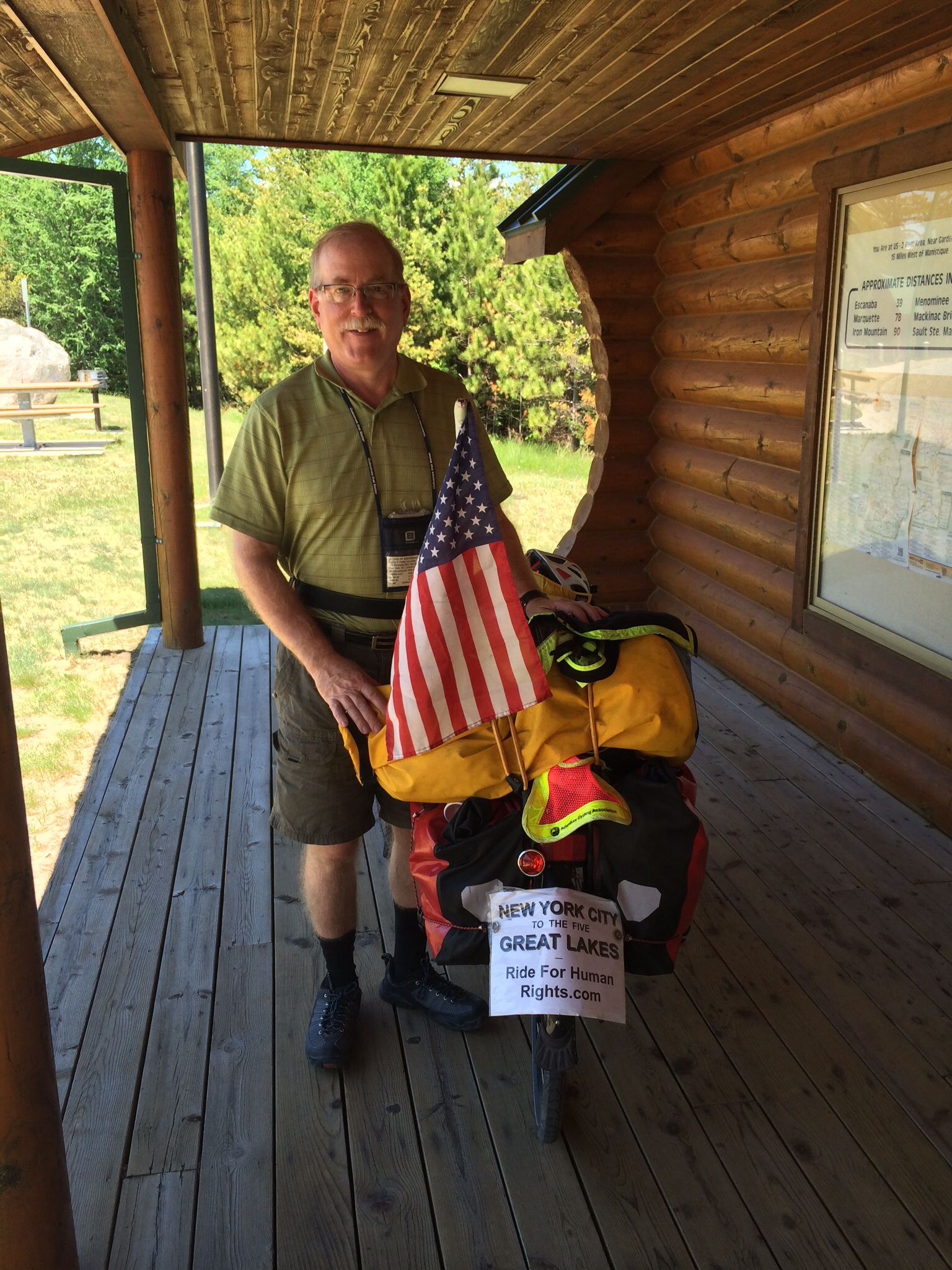 Jocelyn works with the mentally disabled and volunteers on a Twin Cities human rights commission.  Randy is a long-distance truck driver.  They were headed by motorcycle to Mackinac Island.  They were very interested in the Ride.  Jocelyn and I agreed that an important part of the Ride is talking to ordinary people about immigration and asylum issues.  Lots of money and power are invested in maintaining the status quo.  But if enough ordinary people get disgusted enough with the patent inhumanity of leaving lawyerless asylum applicants to fend for themselves, things might change.  Jocelyn said her Human Rights Commission ought to consider a similar approach to getting support for its initiatives.