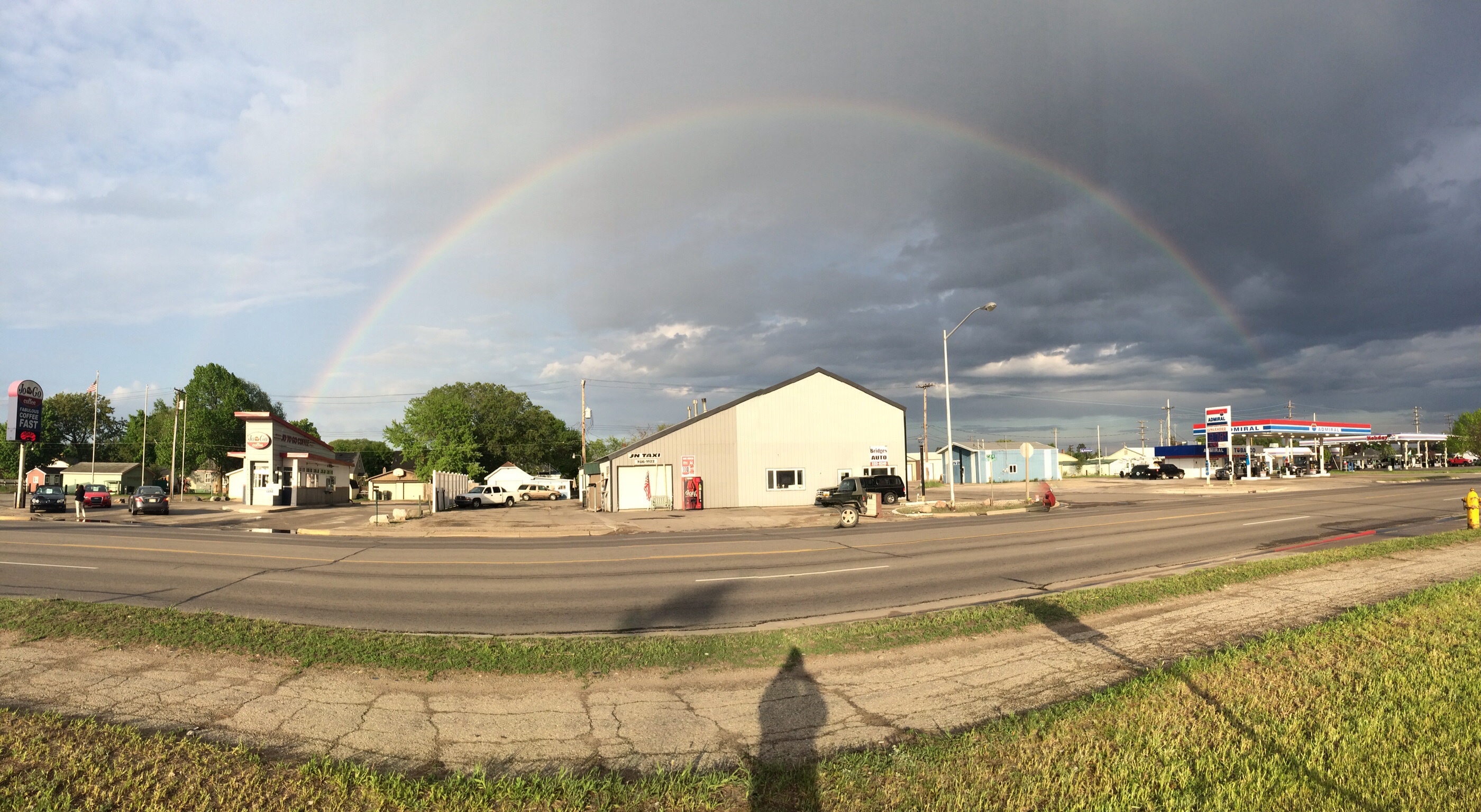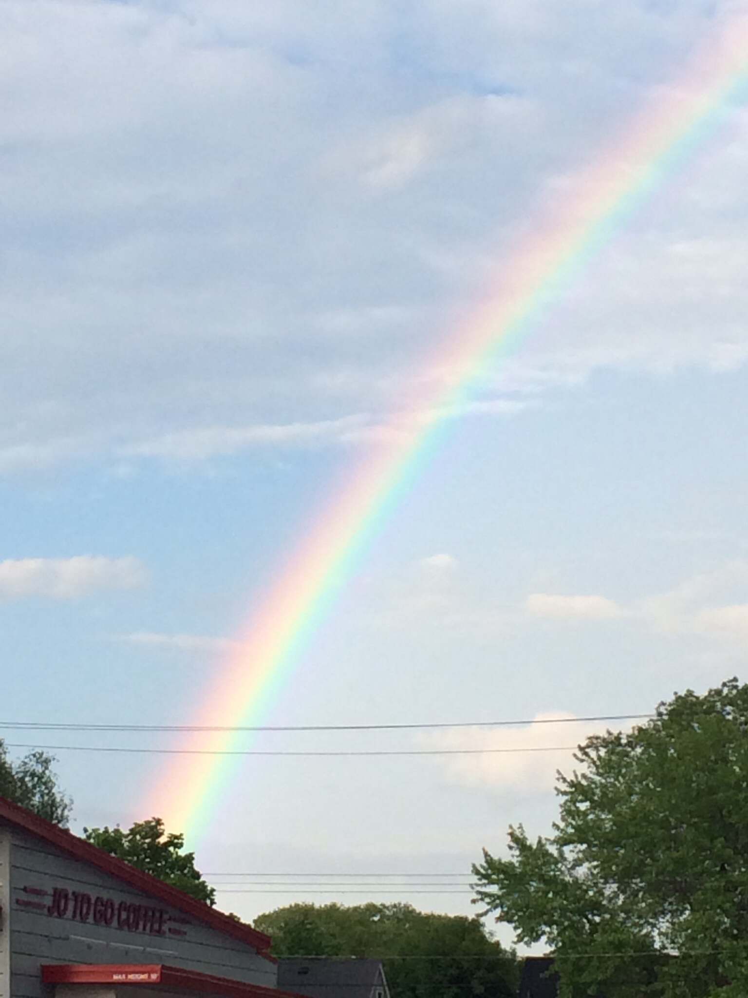We are in Escanaba, Michigan, on Lake Michigan.  Look carefully and you’ll see this evening’s double rainbow!