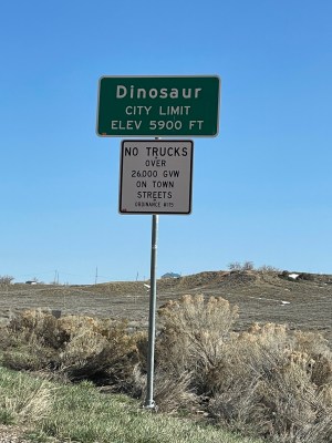 Last night, Mayor Richard Blakley got a call from Marshal Monty. (Dinosaur calls its peace officers “marshals”.) A cyclist had phoned the local constabulary to ask for help. The one motel in town is full with long-term residents. It’s 88 miles to the next motel to the east. The cyclist and his Kangaroo Court Puppet needed a place to stay.
