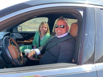 Near this monument, we met JD and Katie. They aren’t Utes but JD grew up in Ute territory. They listened politely to our story about the Ride. Photogenic, they declined to be photographed..