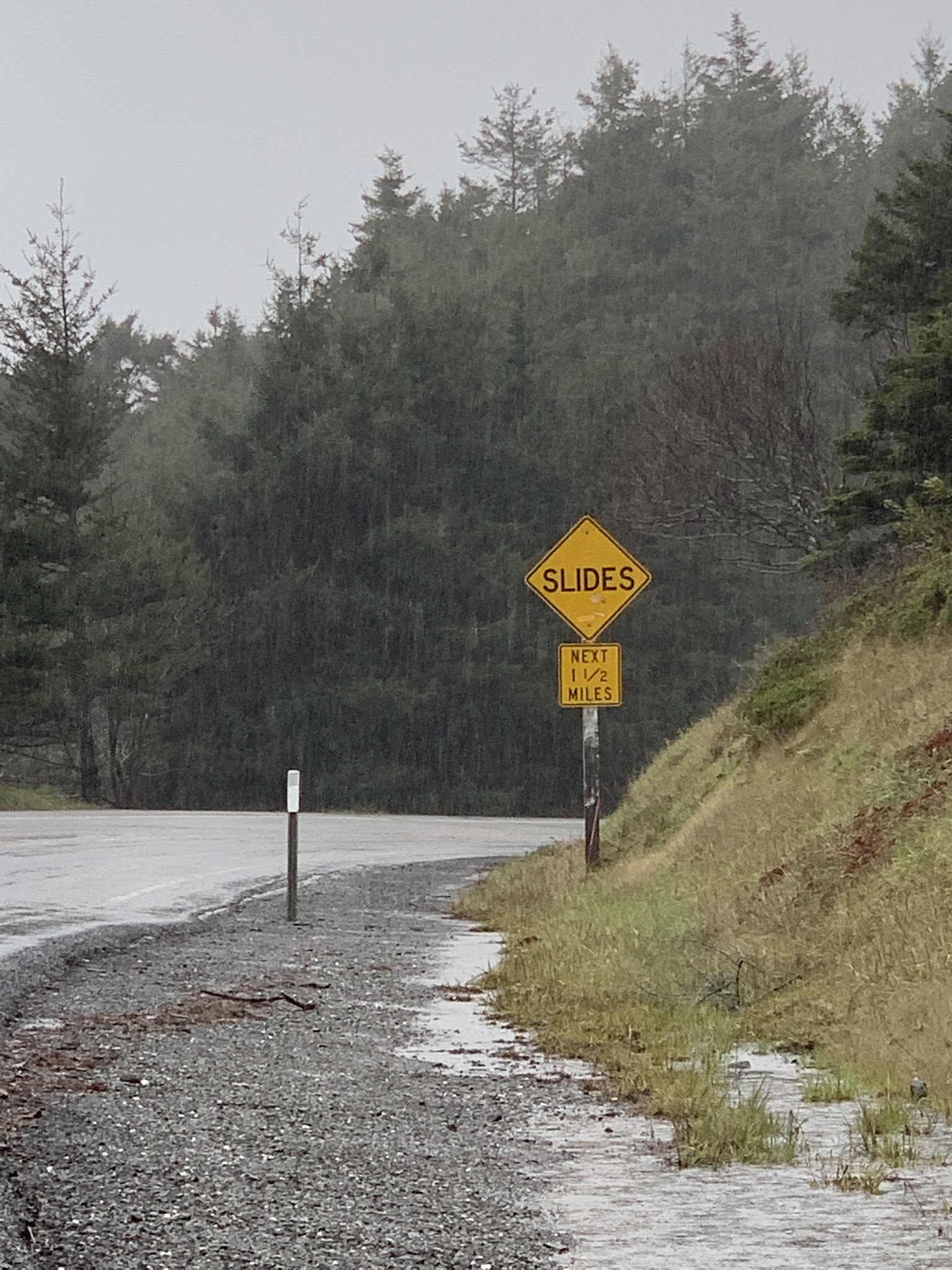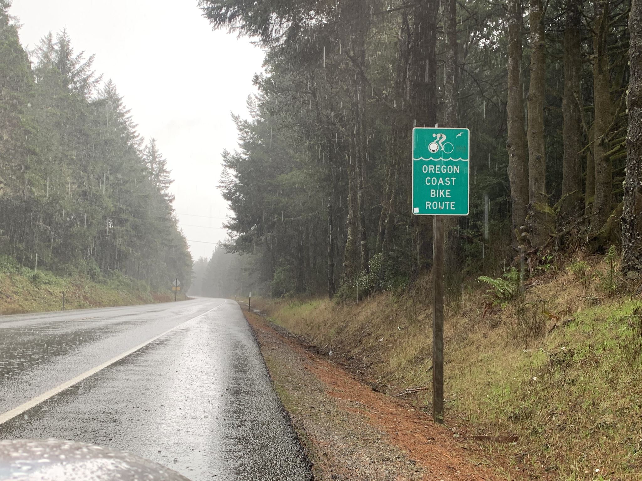It rained, often hard, for 20 of the 31 miles we biked between Gold Beach and Sisters Rock State Park.