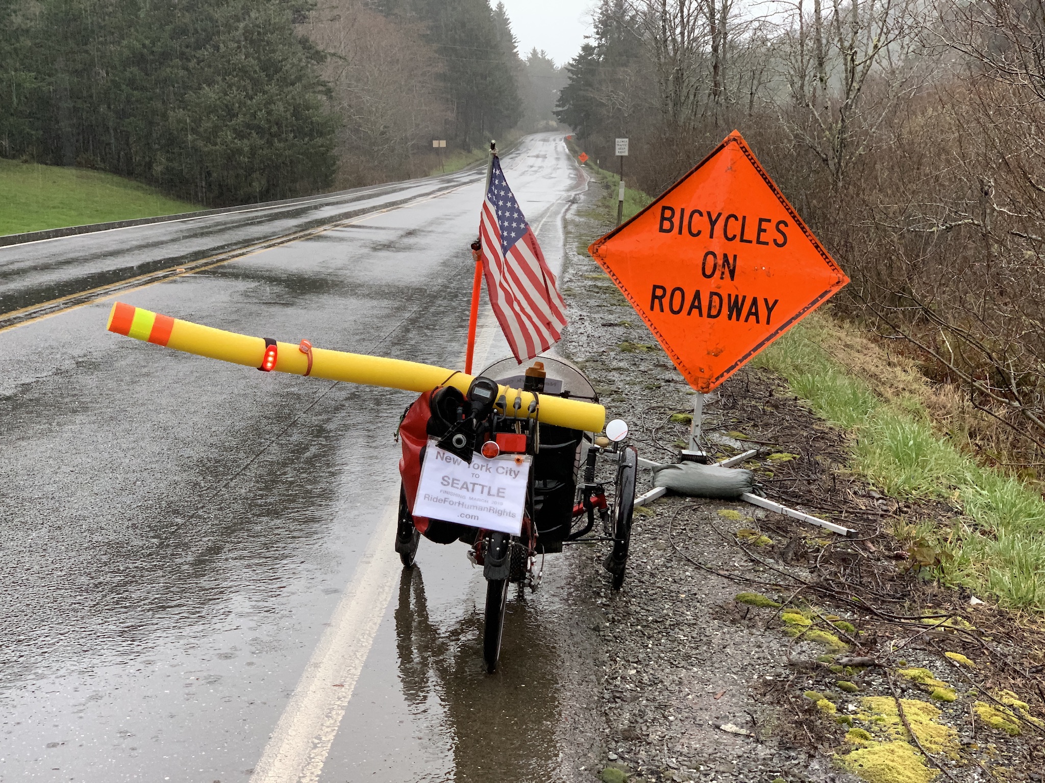 Aside from heavy rain, the only sour notes were two trucks together, one pulling a travel trailer and the other pulling a boat, blasting their horns at us near a “Share the Road” (with bicycles) sign.