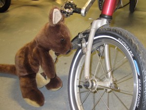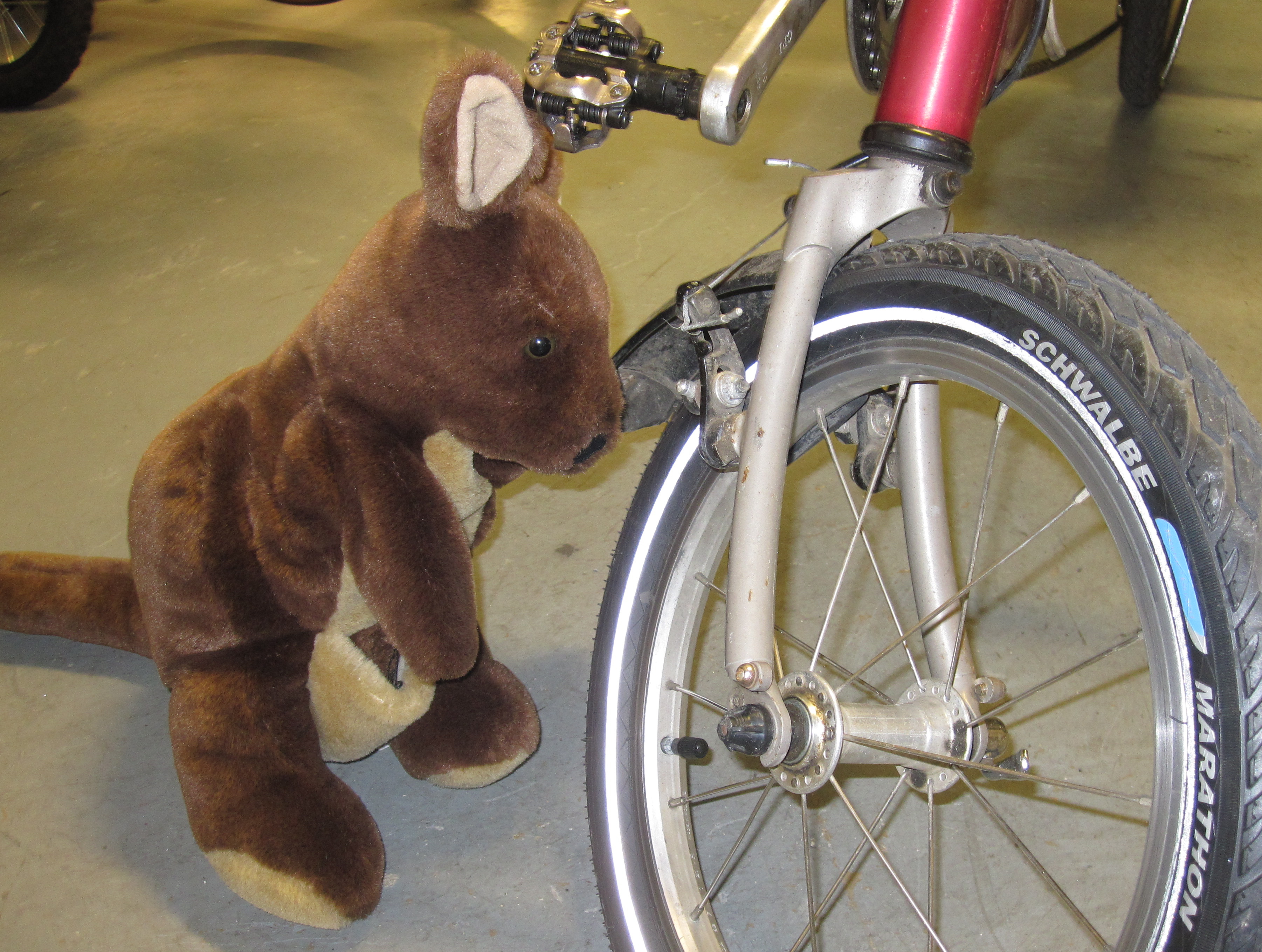 This is one of our new tires. At 70 psi, the Schwalbe Marathons roll faster than our old 50 psi Duros.