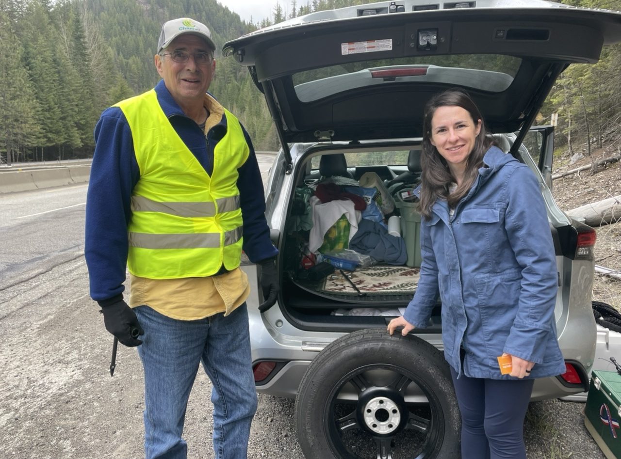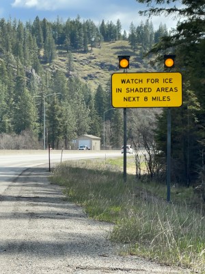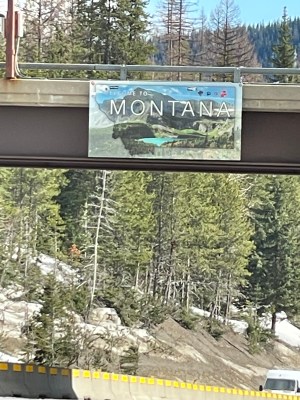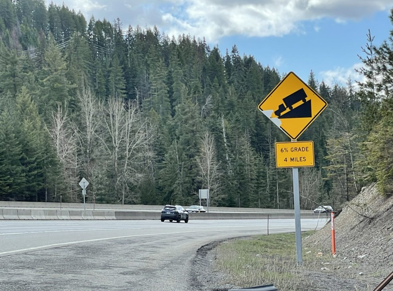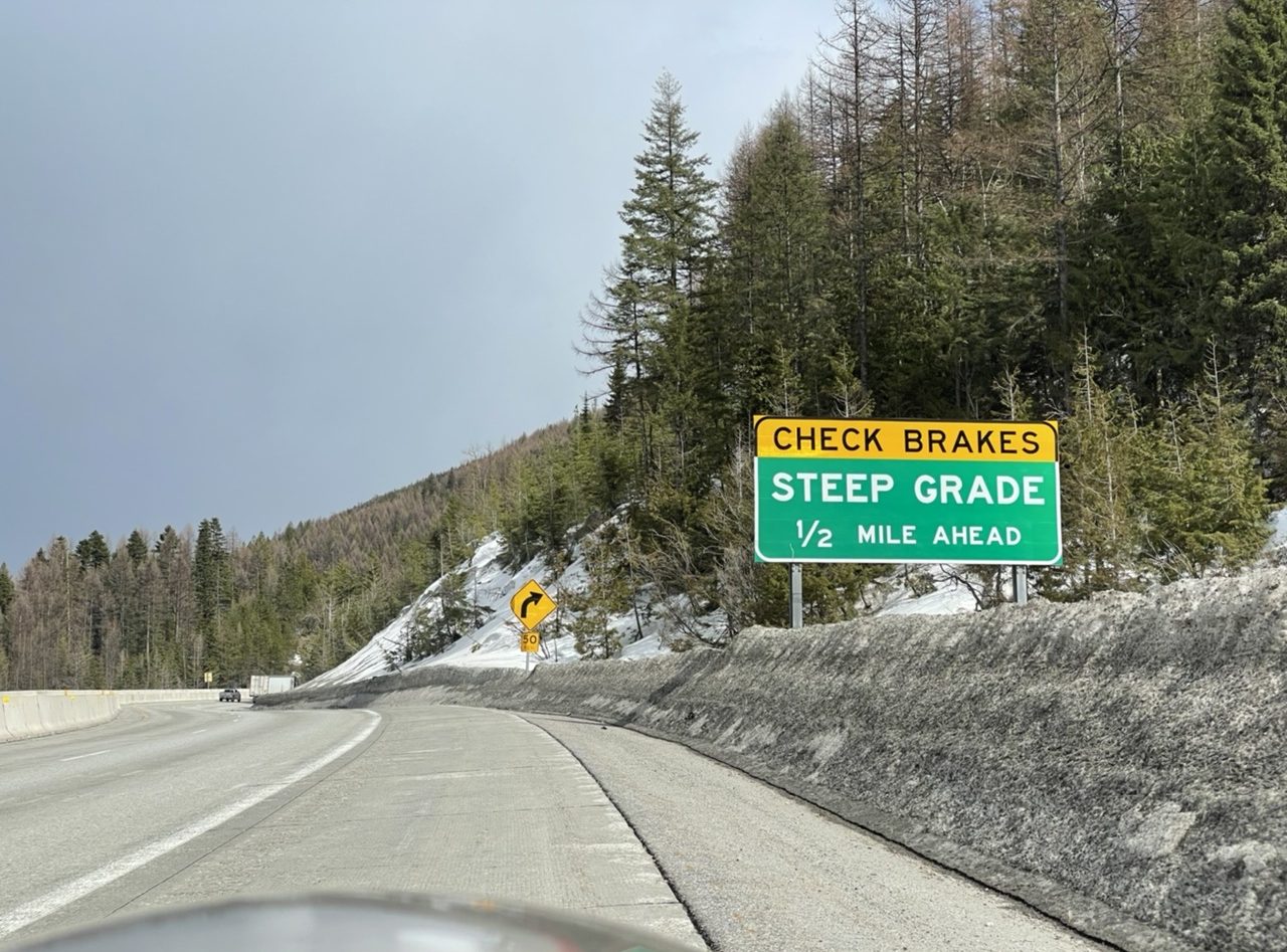 We had to top two mountain passes today. On the ascent to Lookout Pass, I stopped to talk with a father and daughter whose car had blown a tire on a pothole.