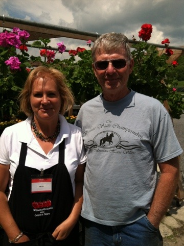 The sun grew hot. South of Wytheville, we stopped for a drink at Williams Orchard, http://www.williamsorchard.com. The Williams family grows fruit and vegetables, maintains a dairy, and specializes in local agricultural products. Beth, who works there but is not a Williams, kindly offered lunch, a shower, whatever Jeffrey might need. She summoned Bobby Williams, one of the owners, so we could talk.