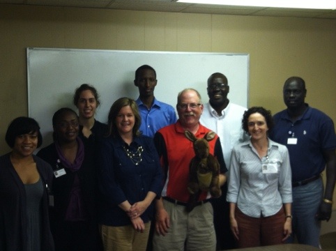 Here we are with Kathy Edson, Gatluak, and some of the staff. The whole office turned out to welcome us and tell us about themselves – they come from all over the U.S. and all over the world – and their work.